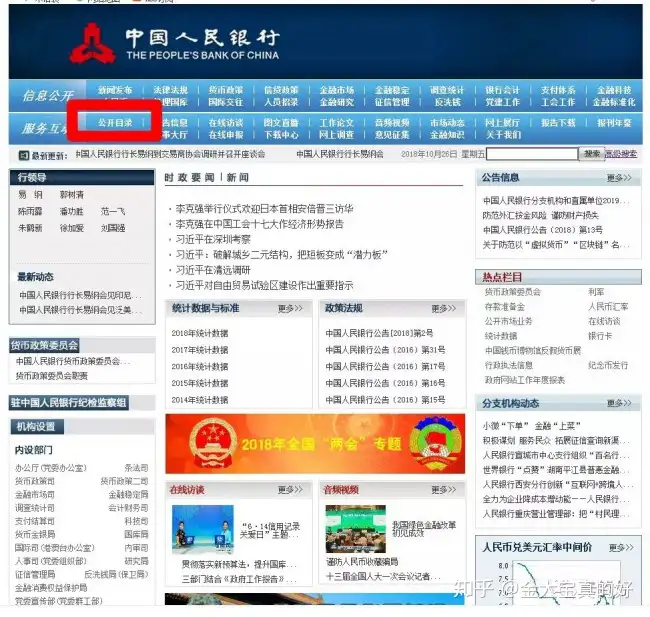 2进入“中国人民银行官网”首页,点击“公开目录”如下图