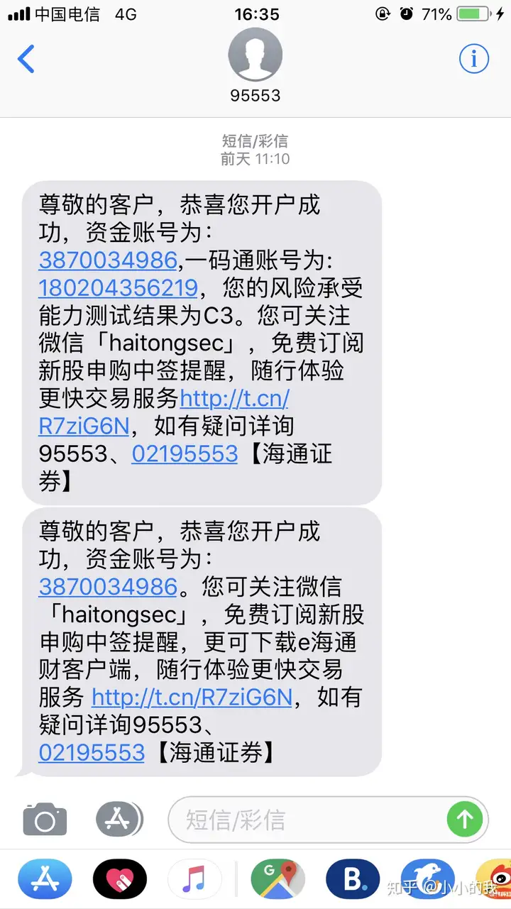 周三的下午,我在翻手机的时候,我突然发现有一条信息是我在海通证劵开户成功了,时间显示的是周一上午11点,也就是我在中国银行开卡的时候,我突然想起来帮我开卡的工作人员也曾经拿着手机让我视频认证过。。。
