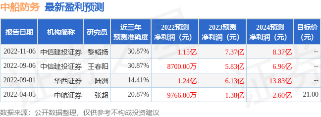 最新盈利预测明细如下:
