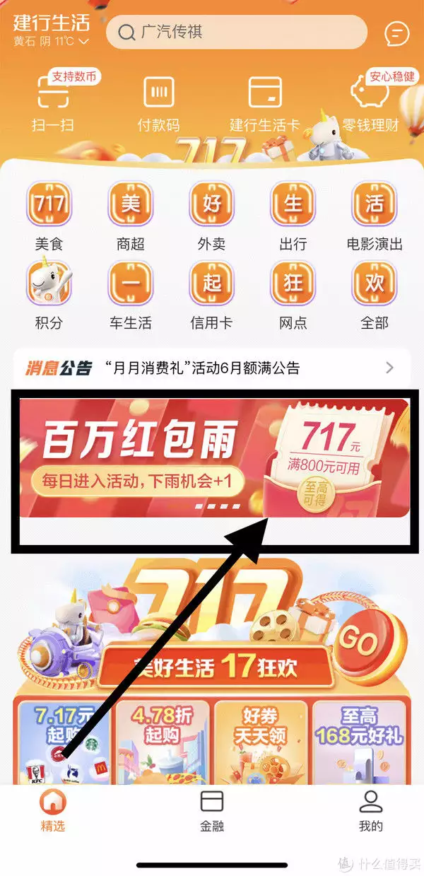 活动1建行生活每天领取最高717元红包