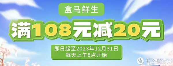 1.盒马鲜生108-20,好利来60-30