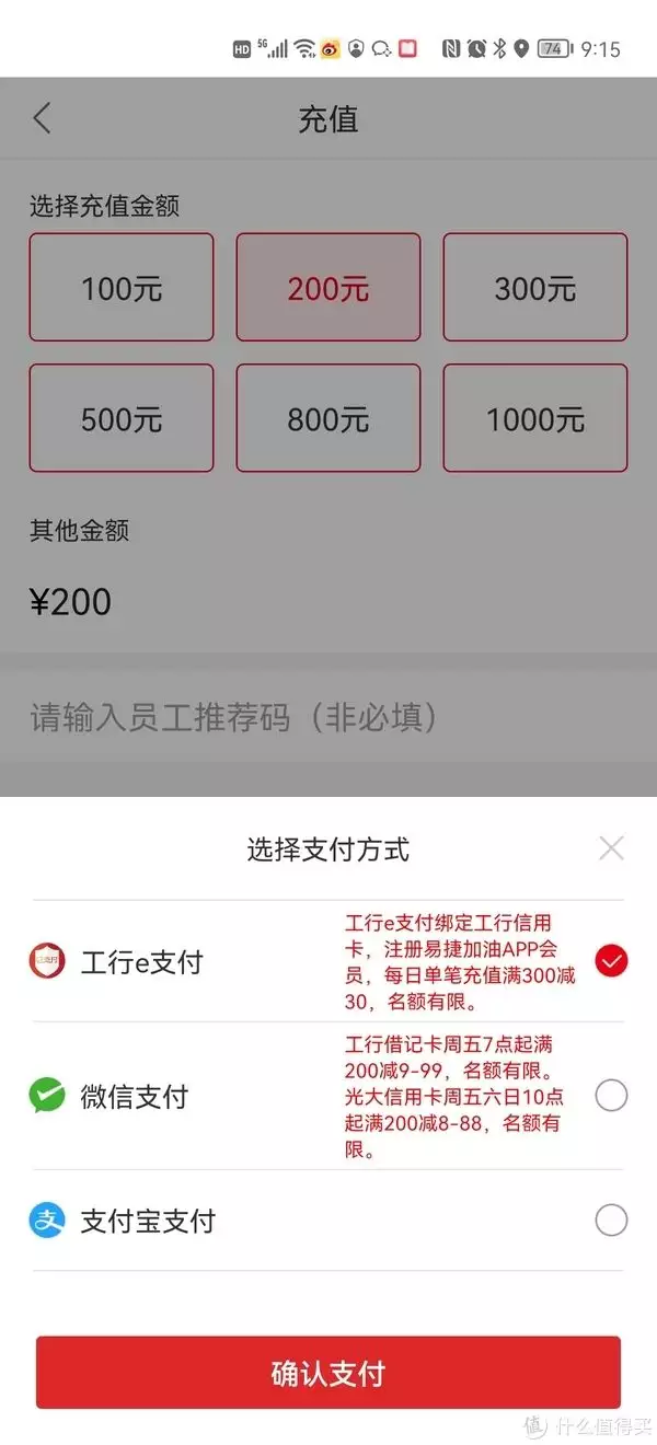 每周五六日,在使用光大信用卡,中石化易捷APP充值享受满200随机立减8-88元优惠。