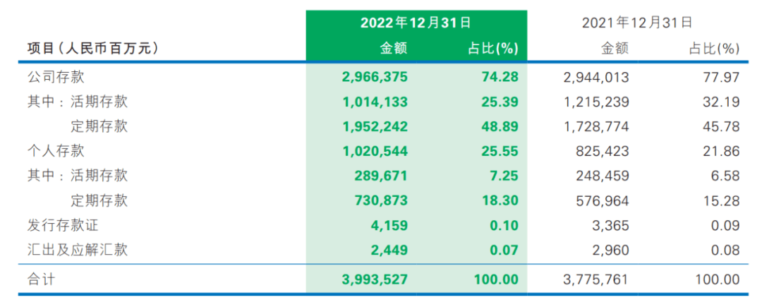 2022年末,民生银行吸收存款总额为3.99万亿元,同比增长5.77%。其中,个人存款贡献较为突出,同比增速天津POS机申请为23.64%,达到1.02万亿元,在吸收存款总额中占比25.56%,比上年末上升3.69个百分点。从期限结构看,活期存款占比32.64%,定期存款占比67.19%。