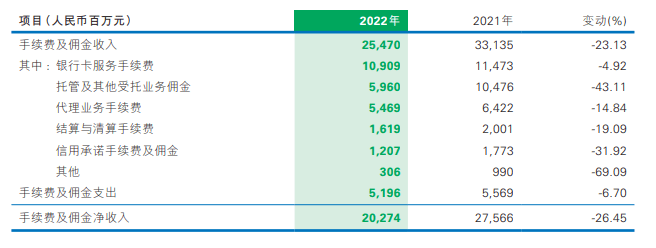 细拆来看,非利息净收入中,手续费及佣金净天津POS机申请收入为202.74亿元,出现了26.45%的大幅下降。其中,与2021年相比,民生银行托管及其他受托业务佣金、代理业务手续费两大营收来源分别下滑43.11%和14.84%。