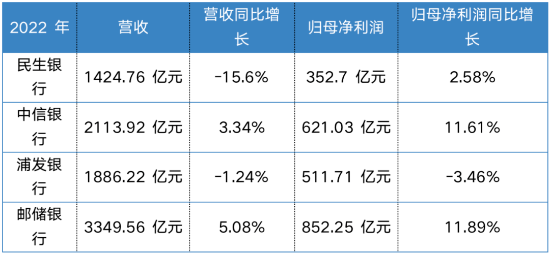 2022年9月,民生银行遭到降组,成为唯一一家从第二组调到第一组的系统重要银行名单。与中信银行、浦发银行、邮储银行另外三家第二组的银行相比,民生银行的表现也远远落后。